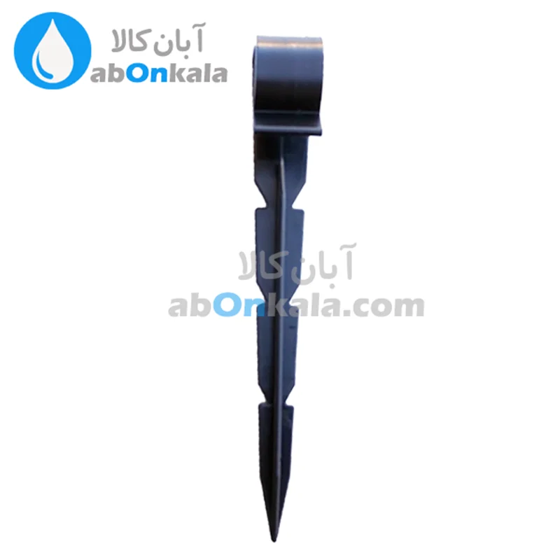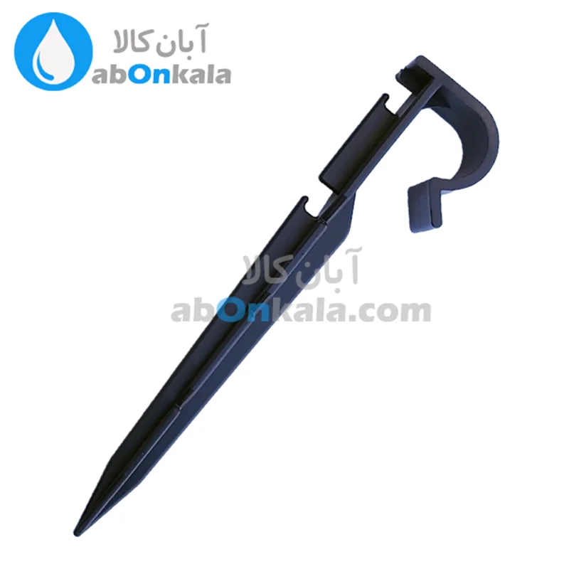 برای نصب میخ تثبیت فقط کافیست تا لوله را در زبانه ی قلاب شکل قرار دهید و پایه ی میخ را درون خاک یا در لا به لای سنگ ها فشار دهید. این کار باعث میشود تا لوله از محل قرار گرفتن میخ تکان نخورد.