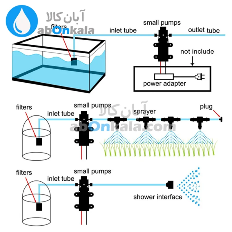 میکرو پمپ بر خلاف ظاهر کوچک خود میتواند با مکش کردن آب و پمپ کردن آن به شما کمک کند. این پمپ کوچک را میتوانید برای نصب مه پاش، آبیاری فضا های کوچک و متوسط، دوش حمام یا برای راه اندازی آکواریوم استفاده کنید. این محصول با برق 12 ولت DC کار میکند. هنگام خرید همراه آن شما آداپتور مخصوص به آن را نیز دریافت میکنید. این دستگاه دارای یک ورودی برای مکش آب و یک خروجی به جهت پمپ کردن آب دارد. هردو دارای رزوه های 1/2 اینچ نر هستند.