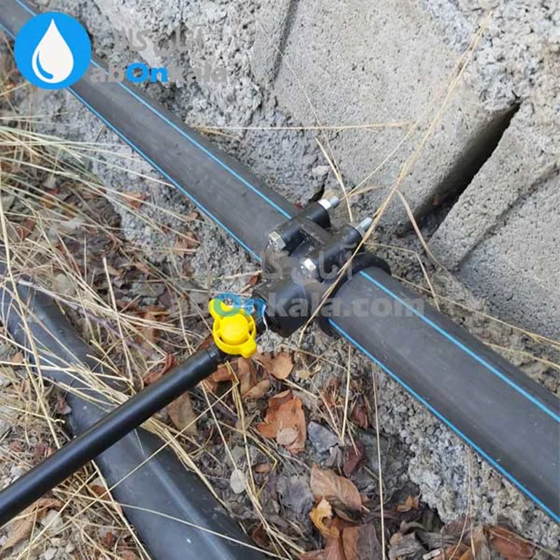 شیر انشعاب 16 در 1/2 برای انشعاب گرفتن از لوله ی اصلی مورد استفاده قرار میگیرد. با اتصال این شیر انشعاب به کمربند پلی اتیلن میتوانید از لوله اصلی انشعاب بگیرید. بهتر است برای نصب قسمت رزوه دار به کمربند پلی اتیلن از نوار تفلن استفاده کنید. نوار تفلن به آب بندی شدن محل اتصال کمک میکند. سپس لوله آبیاری قطره ای را به سمت دیگر شیر متصل کنید. برای اتصال، باید شیر انشعاب را با فشار وارد لوله آبیاری کنید. زائده های قرار گرفته روی شیر انشعاب باعث می شود تا شیر در اثر فشار از لوله جدا نشود. همچنین این زائده ها کمک کند تا آب ازکناره های لوله به بیرون نشت نکند. به همین جهت برای نصب لوله پلی اتیلن به به شیر نیازی به نوار تفلن ندارید.